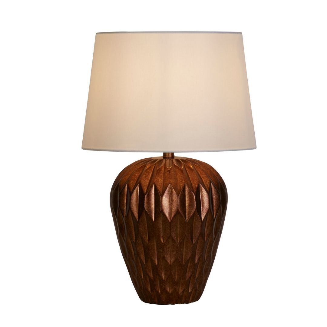 Searchlight stolní lampa barva bronz, povrchová úprava barvení, použitý materiál je polyrezin. Rozměry v cm: celková výška: 57,9, výška: 39, šířka: 39,4, délka: 39,4, projekce: 0. Světelný zdroj objímka E27, potřeba žárovek 1, světelný zdroj není v balení, doporučený typ žárovky od výrobce je klasická baňka na max. 60W.