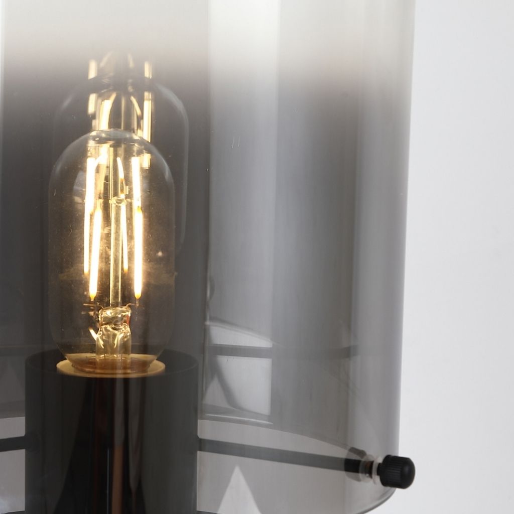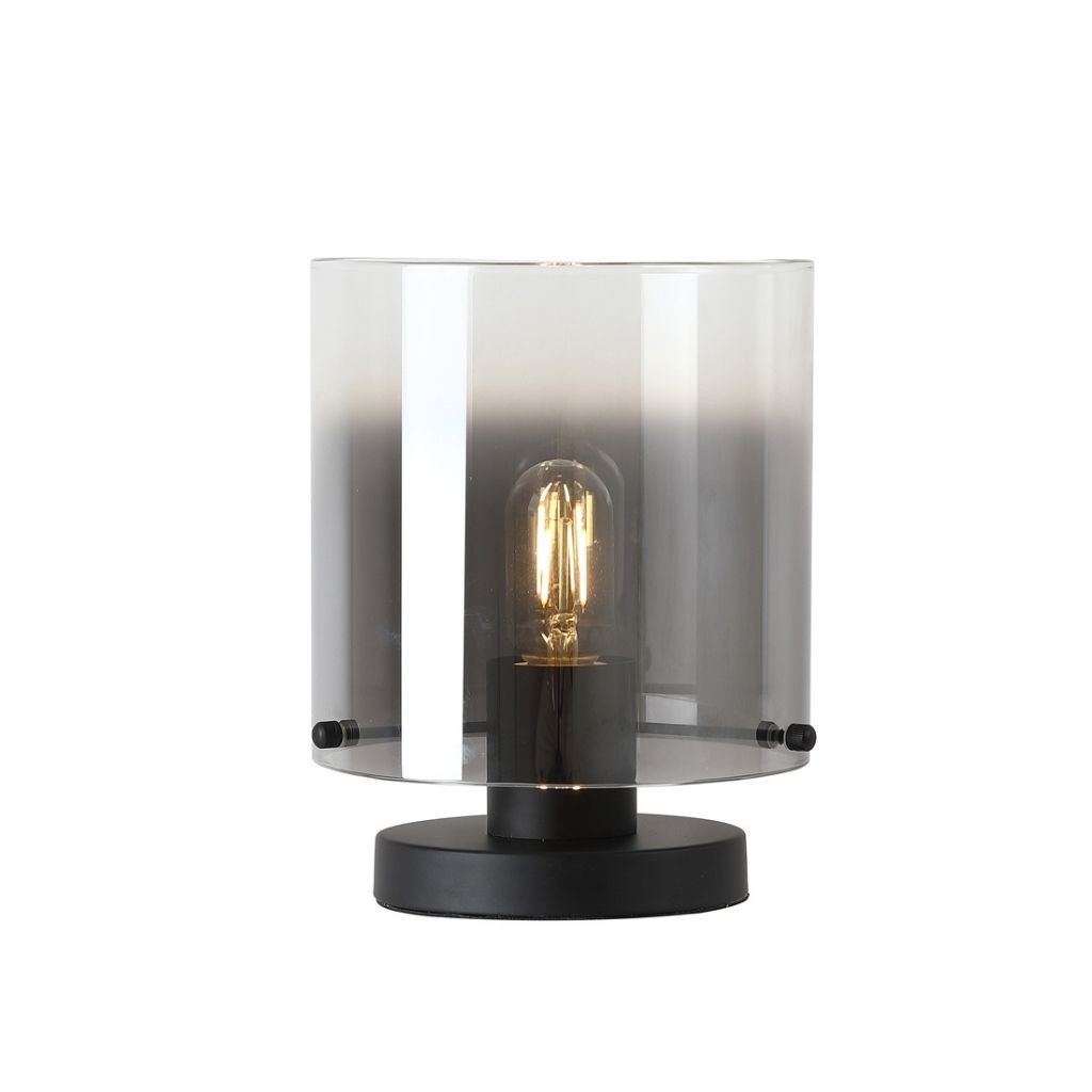 Searchlight stolní lampa barva černá a kouřová, povrchová úprava barvení, použitý materiál je kov a sklo. Rozměry v cm: celková výška: 25,5, výška: 25,5, šířka: 20, délka: 20, projekce: 0. Světelný zdroj objímka E27, potřeba žárovek 1, světelný zdroj není v balení, doporučený typ žárovky od výrobce je klasická baňka na max. 60W.