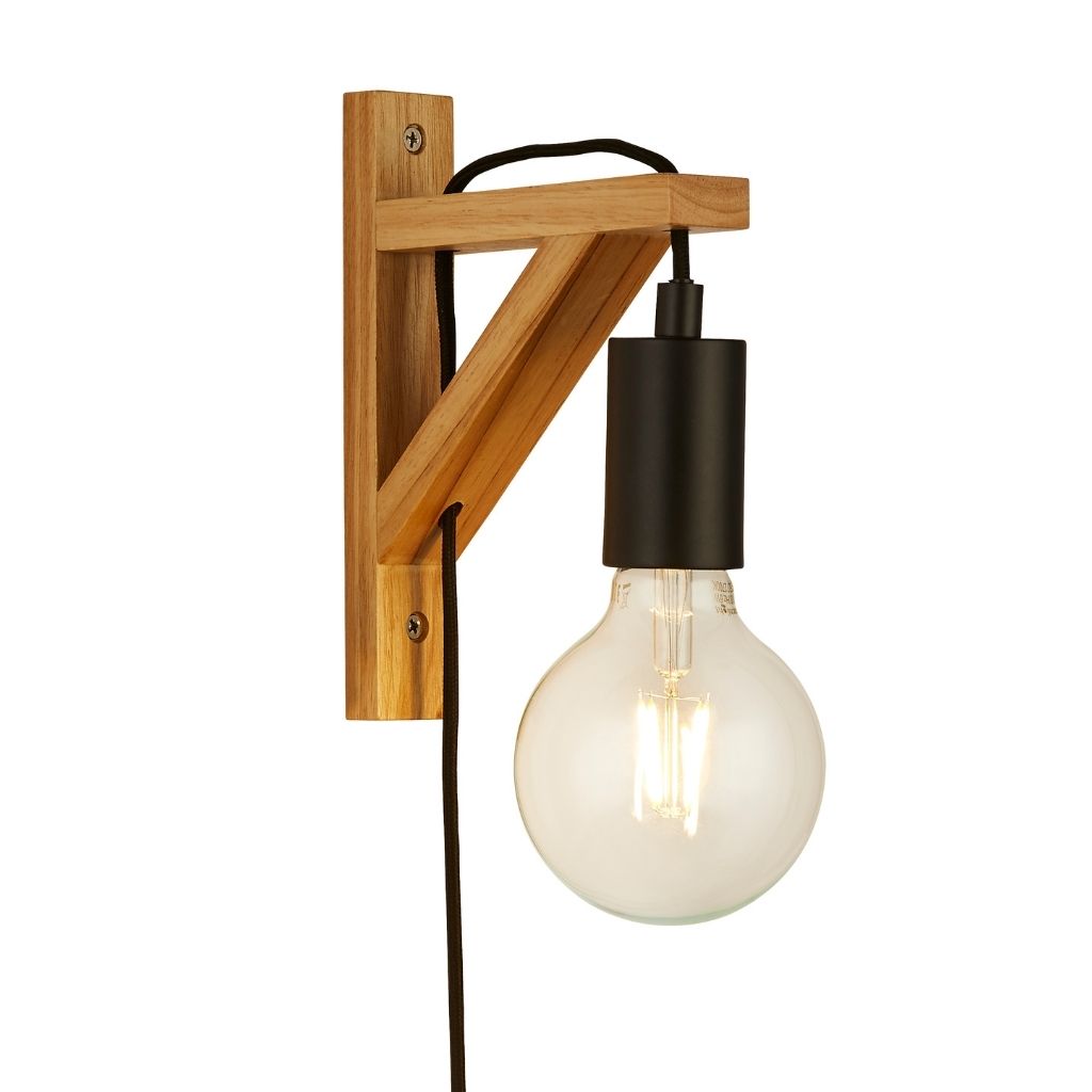 Searchlight nástěnné svítidlo barva přírodní dřevěná a černá, povrchová úprava barvení, použitý materiál je měkká ocel a dřevo. Rozměry v cm: celková výška: 20, výška: 20, šířka: 4,2, délka: 0, projekce: 155,5. Světelný zdroj objímka E27, potřeba žárovek 1, světelný zdroj není v balení, doporučený typ žárovky od výrobce je klasická baňka na max. 60W.