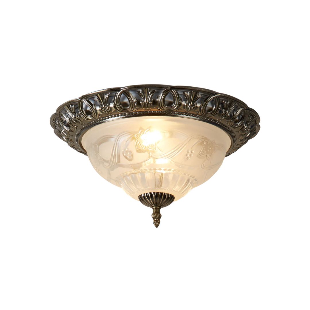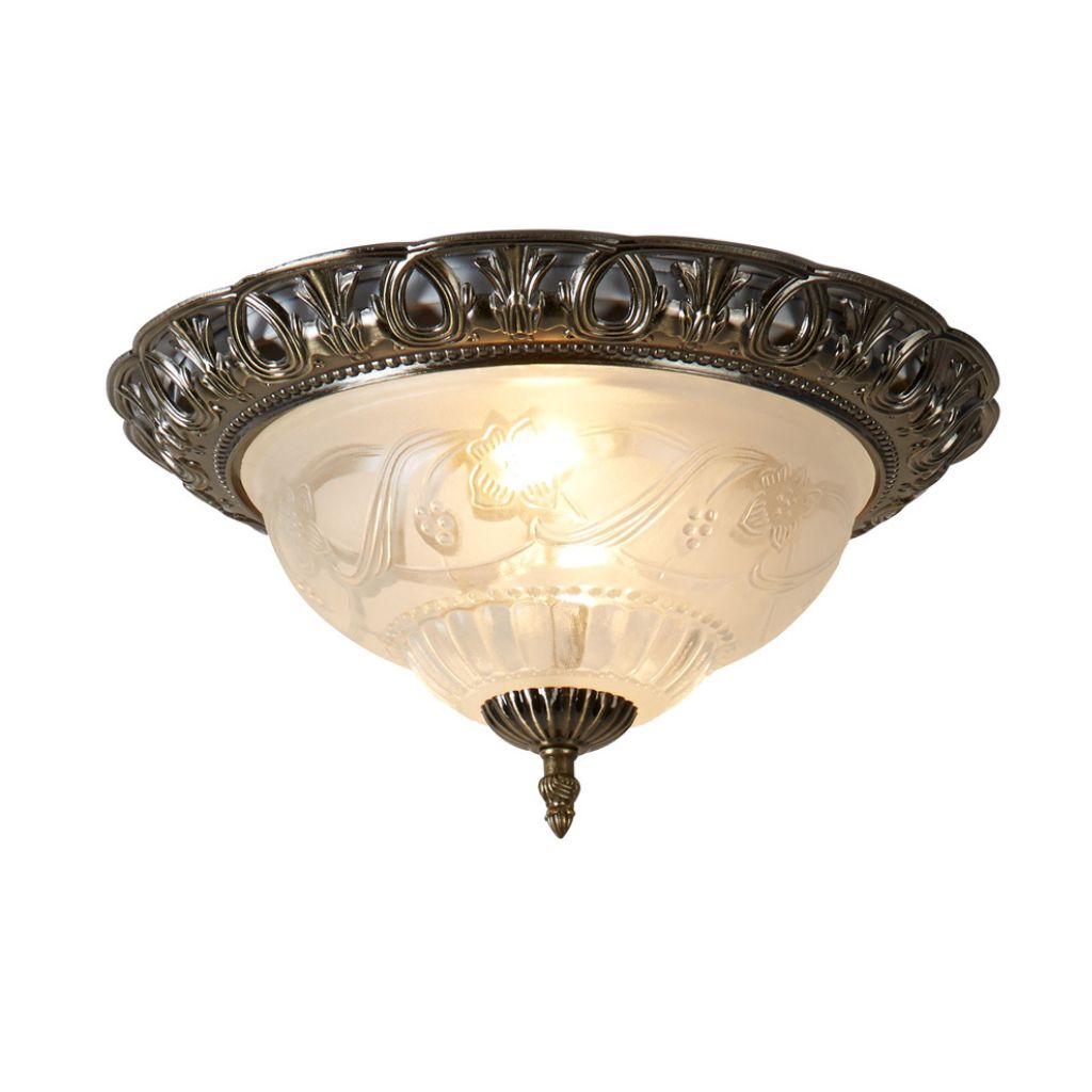 Stropní svítidlo kovové v provedení antická mosaz o průměru 33cm. 2xE14max.10W typu LED.