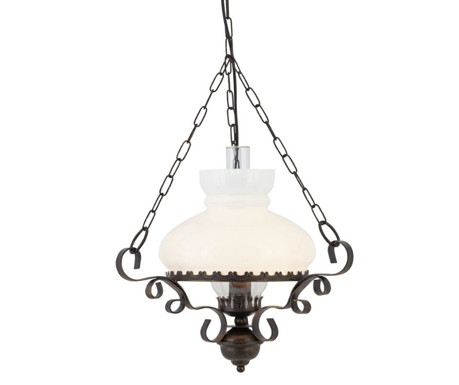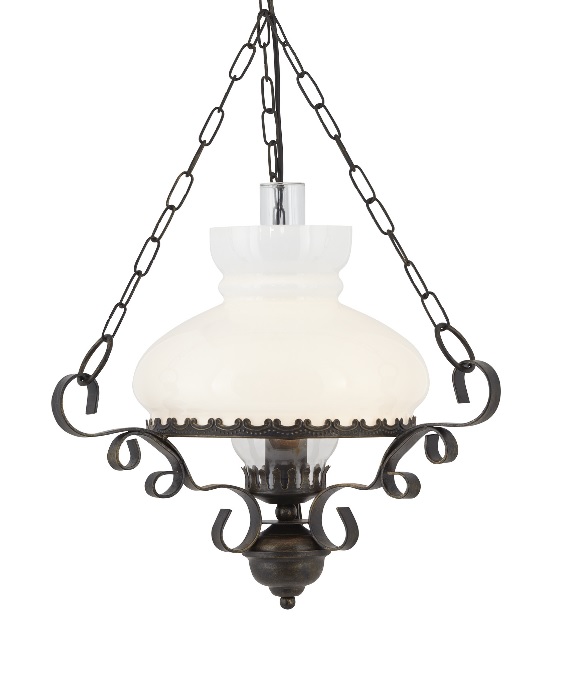 Závěsné svítidlo ve stylu petrolejová lampa o průměru 45cm. Výška je i s kabelem 93cm a 1xE27 max.10W v LED provedení