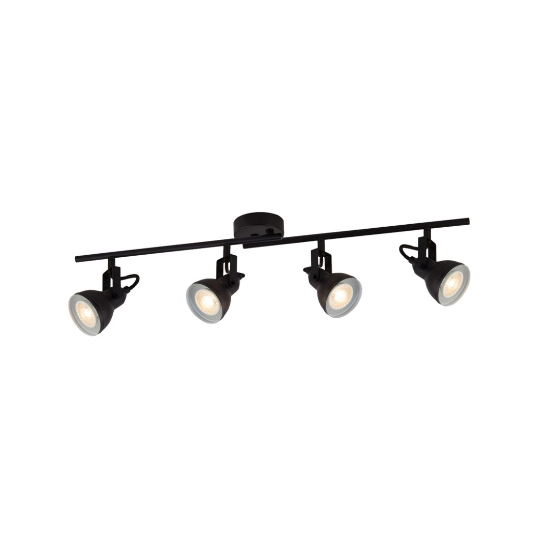 Bodové svítidlo lišta kov černá barva. Od stropu 16cm a natažené v délce 81cm. Patice pro zdroj GU10 na max. 4x35W. Žárovky nejsou součást balení. Bodové svítidlo z kolekce Focus od výrobce svítidel Searchlight.