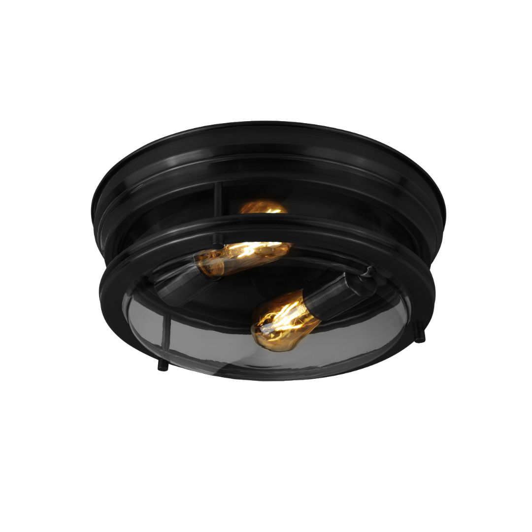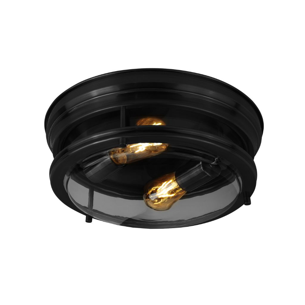 Stropnice kov černá barva a čiré sklo průměr 35cm, od stropu 15cm krytí IP44. Patice pro žárovku E27 na max. 2x60W.