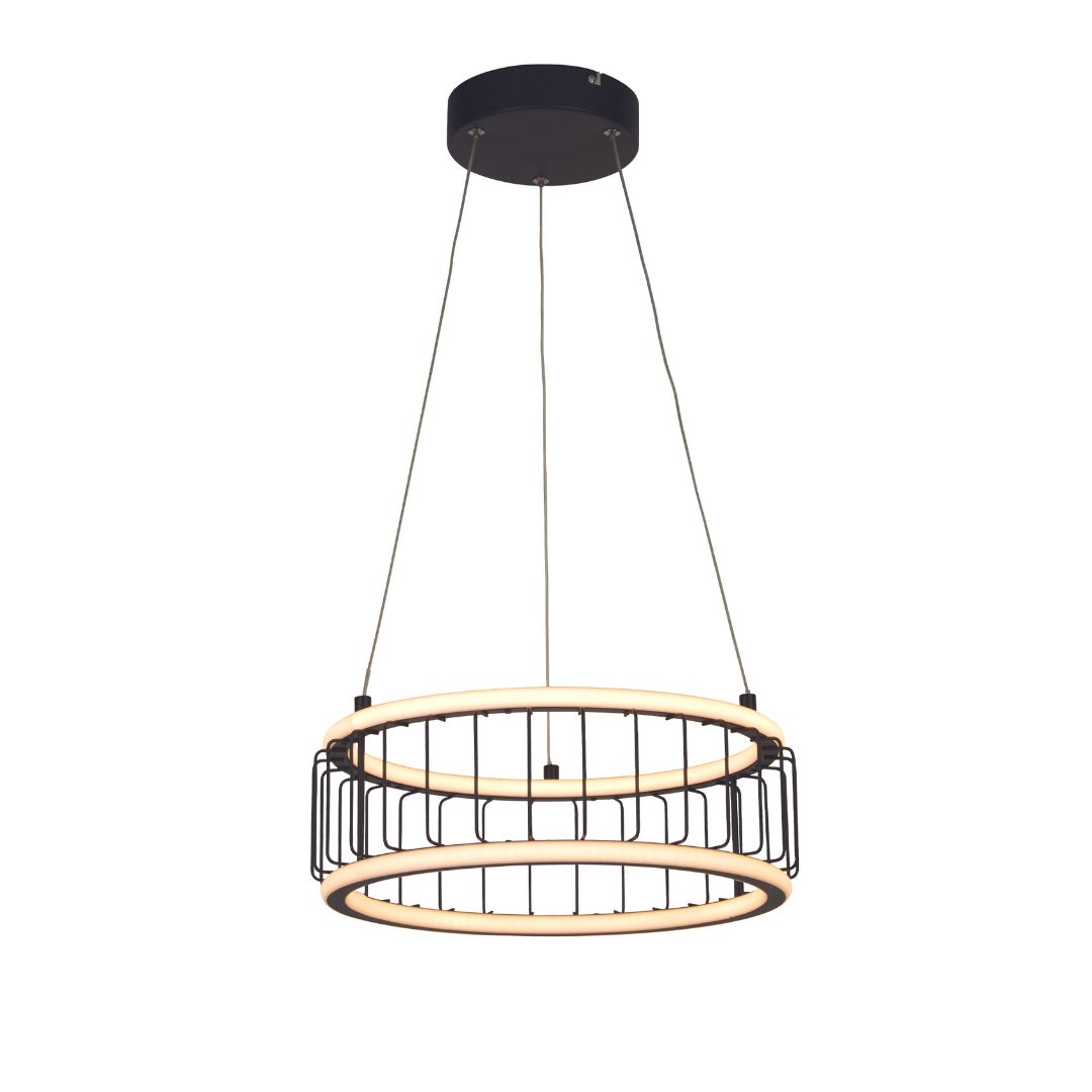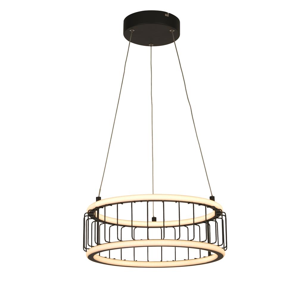 Svítidlo závěsné na strop v matné černé barvě s drátěnými detaily. Působivý design svítidla s integrovaným LED zdrojem.