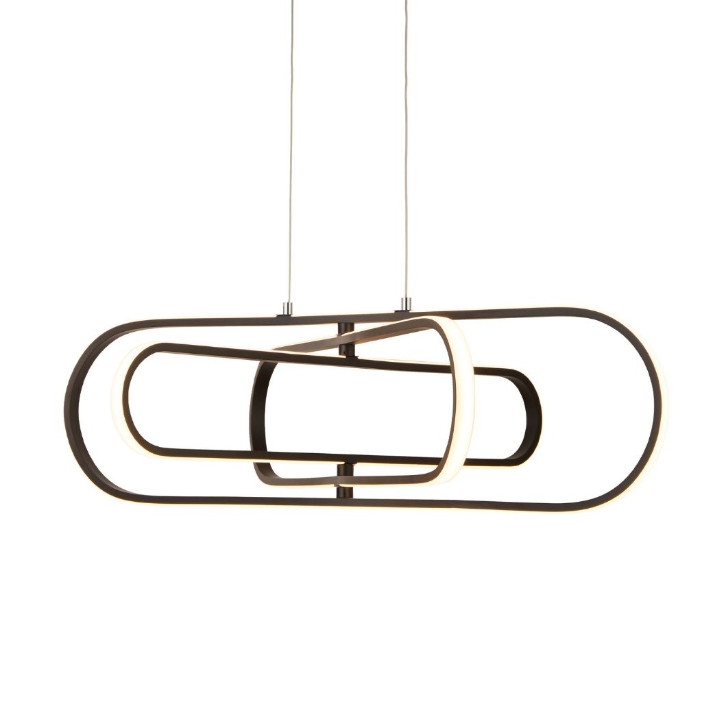 Svítidlo závěsné na strop v matné černé barvě. Působivý moderní design svítidla s integrovaným LED zdrojem.