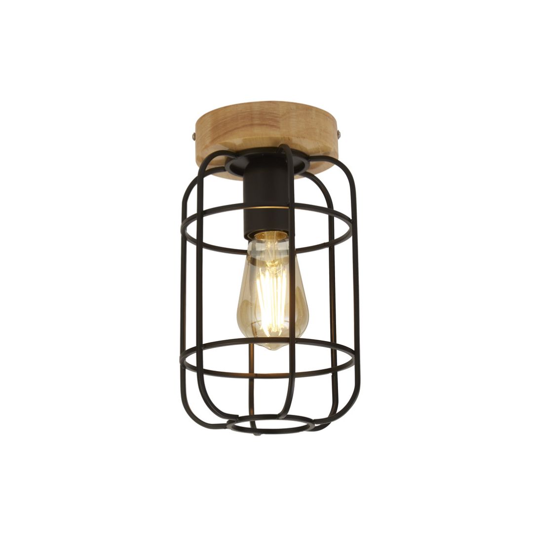 Svítidlo na strop v černé barvě na dřevěném kruhu. Vhodný do jídelny a interiéru se skandinávským stylem.