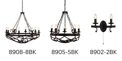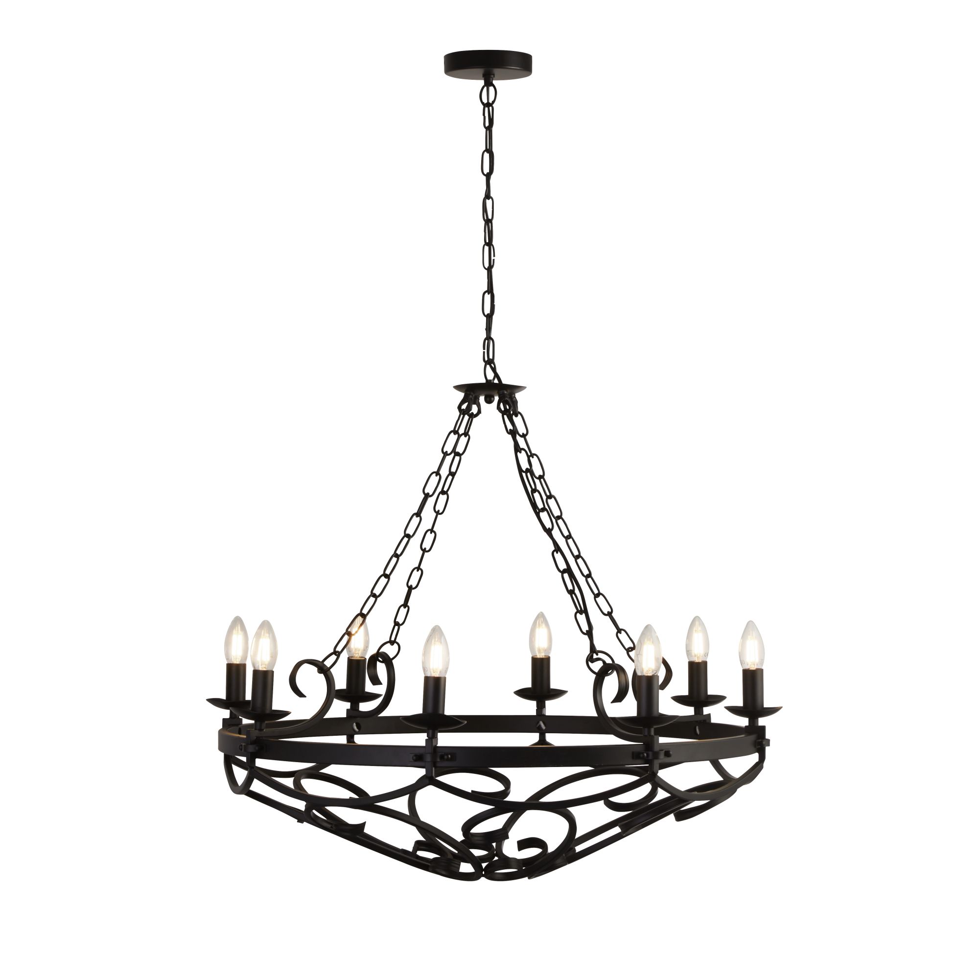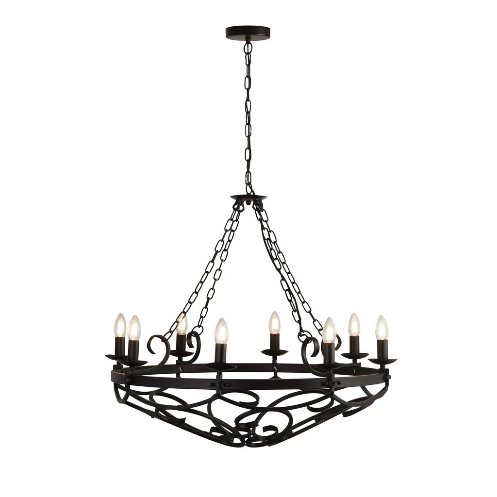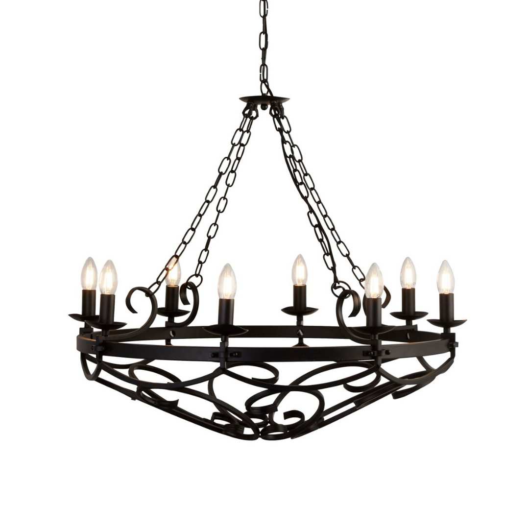Stropní svítidlo kov černý. Od stropu 123cm a průměr 80cm. Patice pro zdroj E14 na max. 8x60W. Žárovky nejsou součást balení. Lustr je z kolekce Cartwheel od výrobce svítidel Searchlight