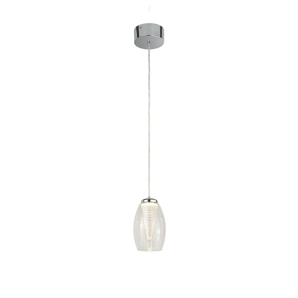 Závěsné svítidlo kov lesklý chrom. Od stropu 120cm a průměr stínidla je 11,5cm. Integrovaná LED má příkon 6W 3000K a svítí 382lumenů. Od výrobce Searchlight z kolekce Cyclone.