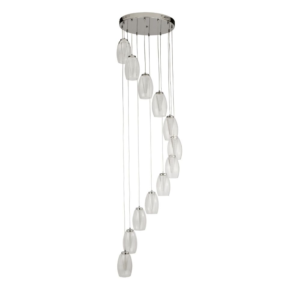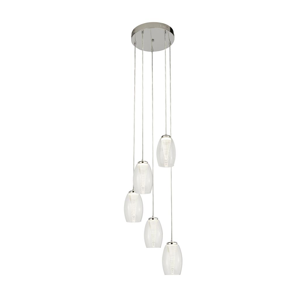 Závěsné svítidlo kov lesklý chrom. Od stropu 150cm a průměr 36cm. Integrovaná LED má příkon 26W 3000K a svítí 1960lumenů. Od výrobce Searchlight z kolekce Cyclone.