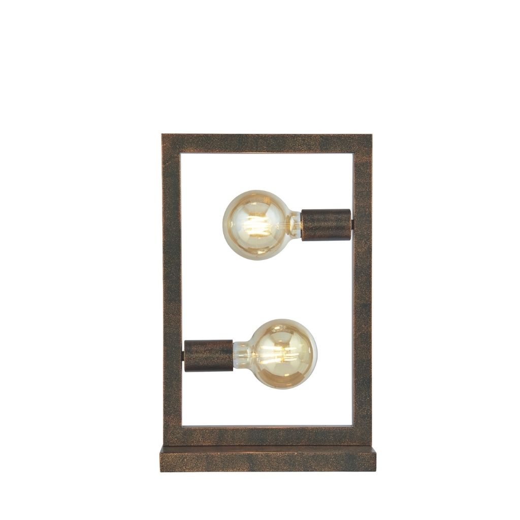 Svítidlo jako stolní lampa v rezavé rustikální barvě jako industriání styl. Kolébkový vypínač je na kabelu.