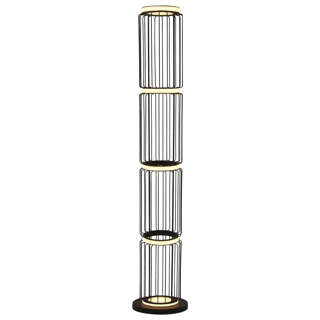 Stojací lampa v matné černé barvě s drátěnými detaily. Působivý design svítidla s integrovaným LED zdrojem.