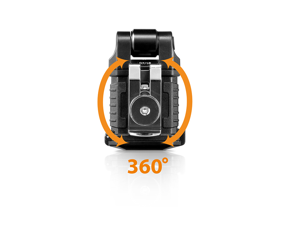 na oblečení (kapsu, výložku, pásek) a otáčením o 360° nastavit